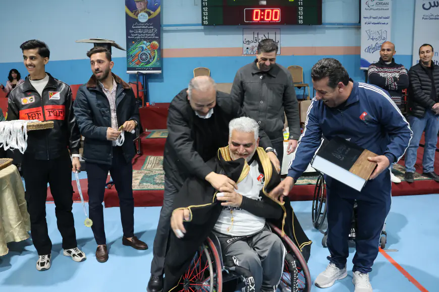 درب الاردن - اختُتمت منافسات بطولة كأس الأردن لكرة السلة بالكراسي المتحركة، الأربعاء، في أجواء احتفالية رمضانية، مميزة على صالة اللجنة البارالمبية الأردنية، وسط حضور رسمي وجماهيري لافت، تُوِّج خلالها نادي أجيال الغد بلقب البطولة والميدالية الذهبية، بعد مشوار حافل بالعطاء والمستويات الفنية القوية.