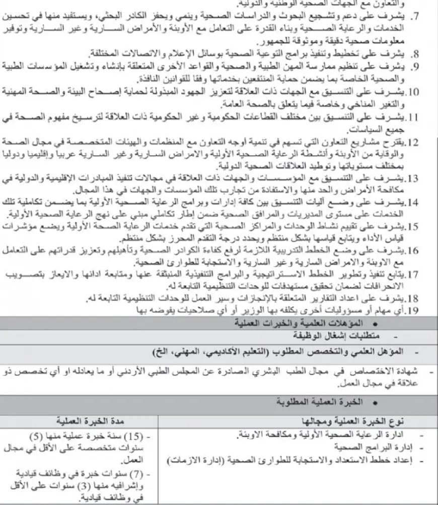 درب الأردن - أعلنت رئاسة الوزراء عن فتح باب التقديم لشغل منصب "أمين عام وزارة الصحة للرعاية الصحية الأولية والأوبئة".