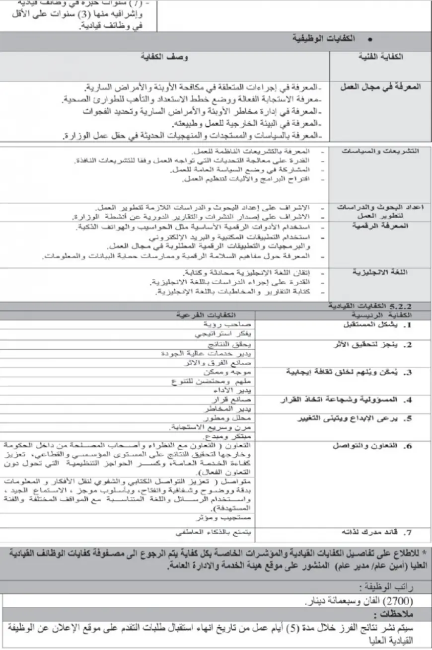 الحكومة تعلن عن وظيفة قيادية شاغرة (التفاصيل)