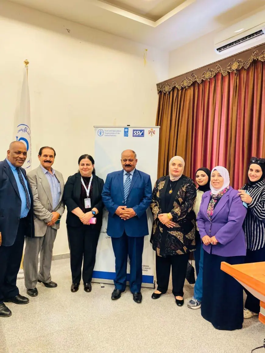 درب الأردن - نفذت منظمة الأغذية والزراعة للأمم المتحدة "الفاو"، وبالتعاون مع شركة الرؤية العلمية المستدامة في مأدبا، الورشة الختامية لنشاط "المشاركة المجتمعية ونشر الوعي حول التكيف مع تغيرات المناخ"، وذلك ضمن مشروع "بناء القدرة على التكيف مع تغير المناخ من خلال تحسين كفاءة إستخدام المياه في قطاع الزراعة"، بمشاركة ممثلين ومشاركين من محافظات مأدبا والكرك والطفيلة ومعان، وحضور مساعد محافظ مأدبا راكان العدوان وعضو مجلس المحافظة محمود الحيصة.