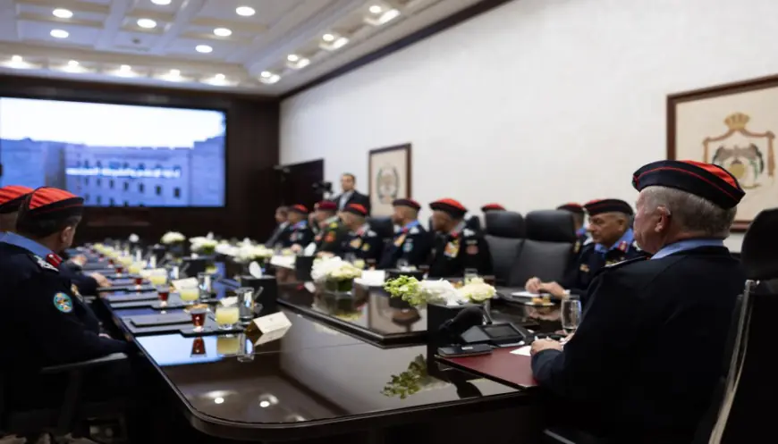 واستمع جلالته، بحضور مدير الأمن العام اللواء الدكتور عبيدﷲ المعايطة، إلى إيجاز قدمه مساعد مدير الأمن العام للعمليات والتدريب، حول أبرز إنجازات المديرية خلال عام 2025، ومشاريعها للتطوير والتحديث لعام 2026، لا سيما ما يتعلق بتعزيز استخدام التكنولوجيا والذكاء الاصطناعي في منظومتي العمل الشرطي والأمني.