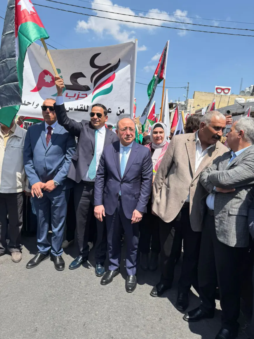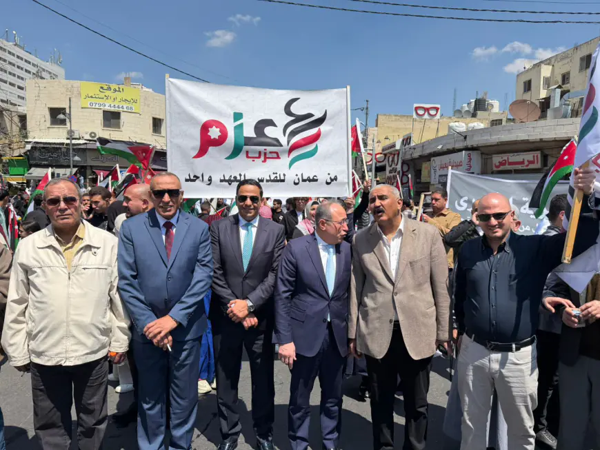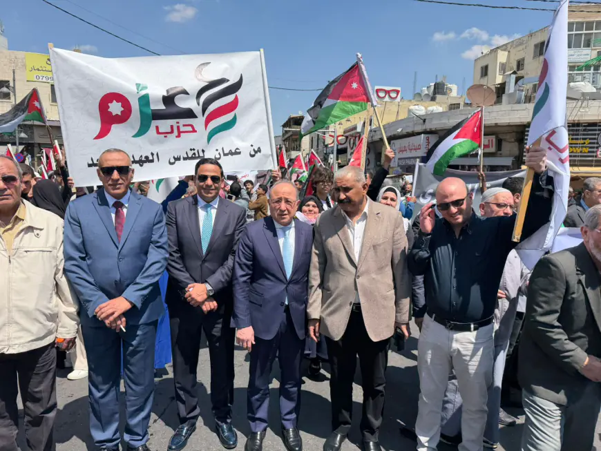 درب االأردن - شارك حزب عزم اليوم الجمعة، في المسيرة الشعبية التي انطلقت دعمًا للمواقف الملكية تجاه القضية الفلسطينية، مؤكدًا اعتزازه بدور جلالة الملك عبدالله الثاني في حماية الثوابت الوطنية والدفاع عن القدس والمقدسات. وجاءت مشاركة الحزب تعبيرًا عن التزامه بالوقوف إلى جانب الوطن وقيادته في هذه المرحلة الدقيقة.