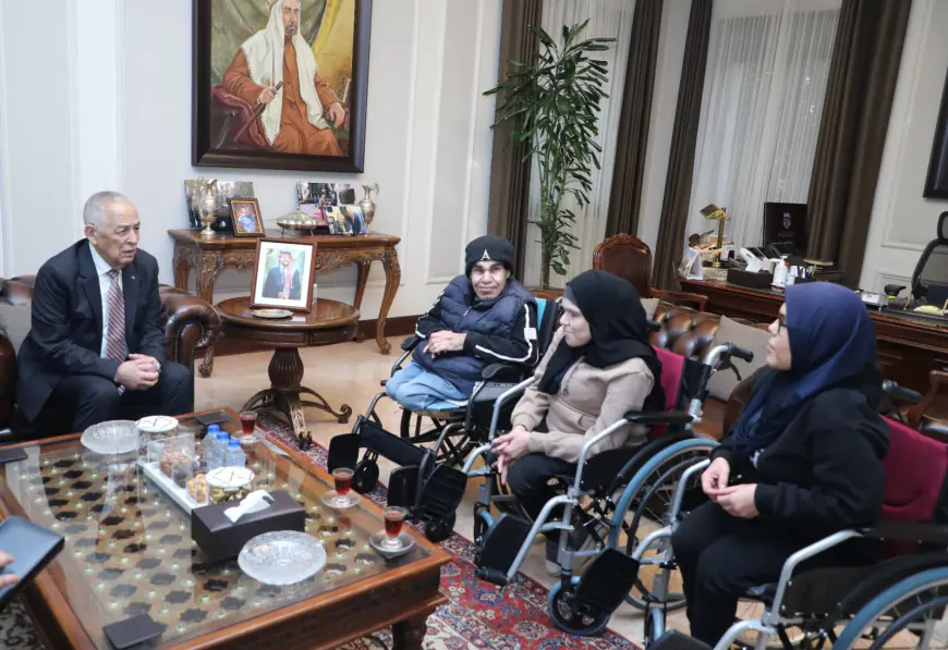 درب الأردن - بناء على توجيهات جلالة الملك عبدالله الثاني، استضاف رئيس الديوان الملكي الهاشمي يوسف حسن العيسوي، صباح اليوم الأحد، أسرة أردنية تجسد معاني الصبر والتعفف، مكونة من ثلاثة أشقاء (شابتان وشاب) من ذوي الإعاقة، يواجهون ظروفاً معيشية قاسية تفتقر لأبسط مقومات الحياة الكريمة، وذلك للوقوف على احتياجاتهم والاستماع لمطالبهم بشكل مباشر.