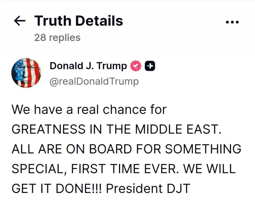 وكتب ترامب عبر منصته "تروث سوشيال": "الجميع على أهبة الاستعداد لحدث استثنائي، لأول مرة على الإطلاق... سننجح في إنجاز هذا الأمر"، في إشارة إلى خطة تتضمن 21 بندًا، أبرزها وقف دائم لإطلاق النار، انسحاب تدريجي للقوات الإسرائيلية من غزة، وإنشاء آلية حكم جديدة لا تشمل حركة حماس.