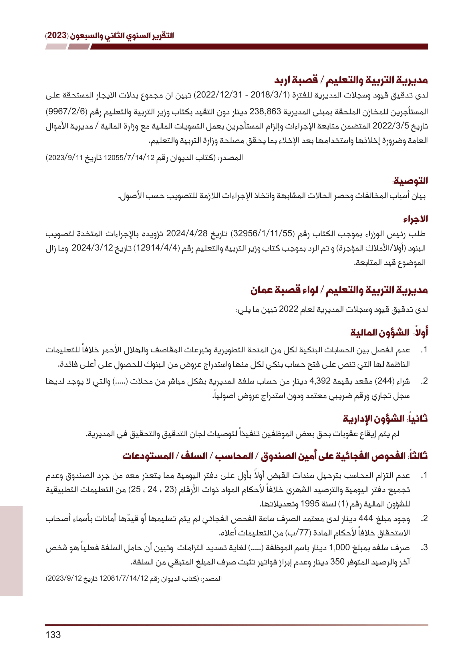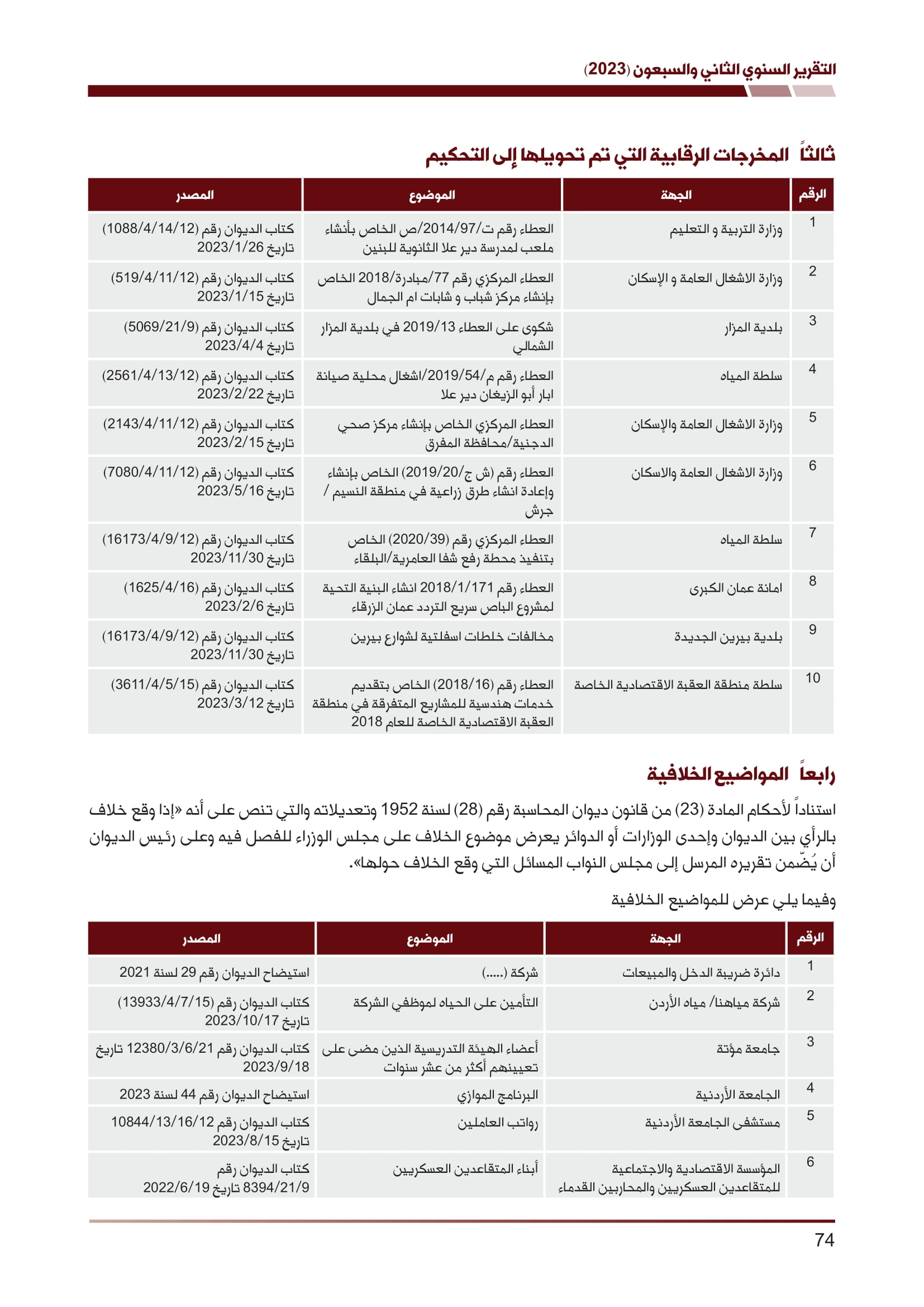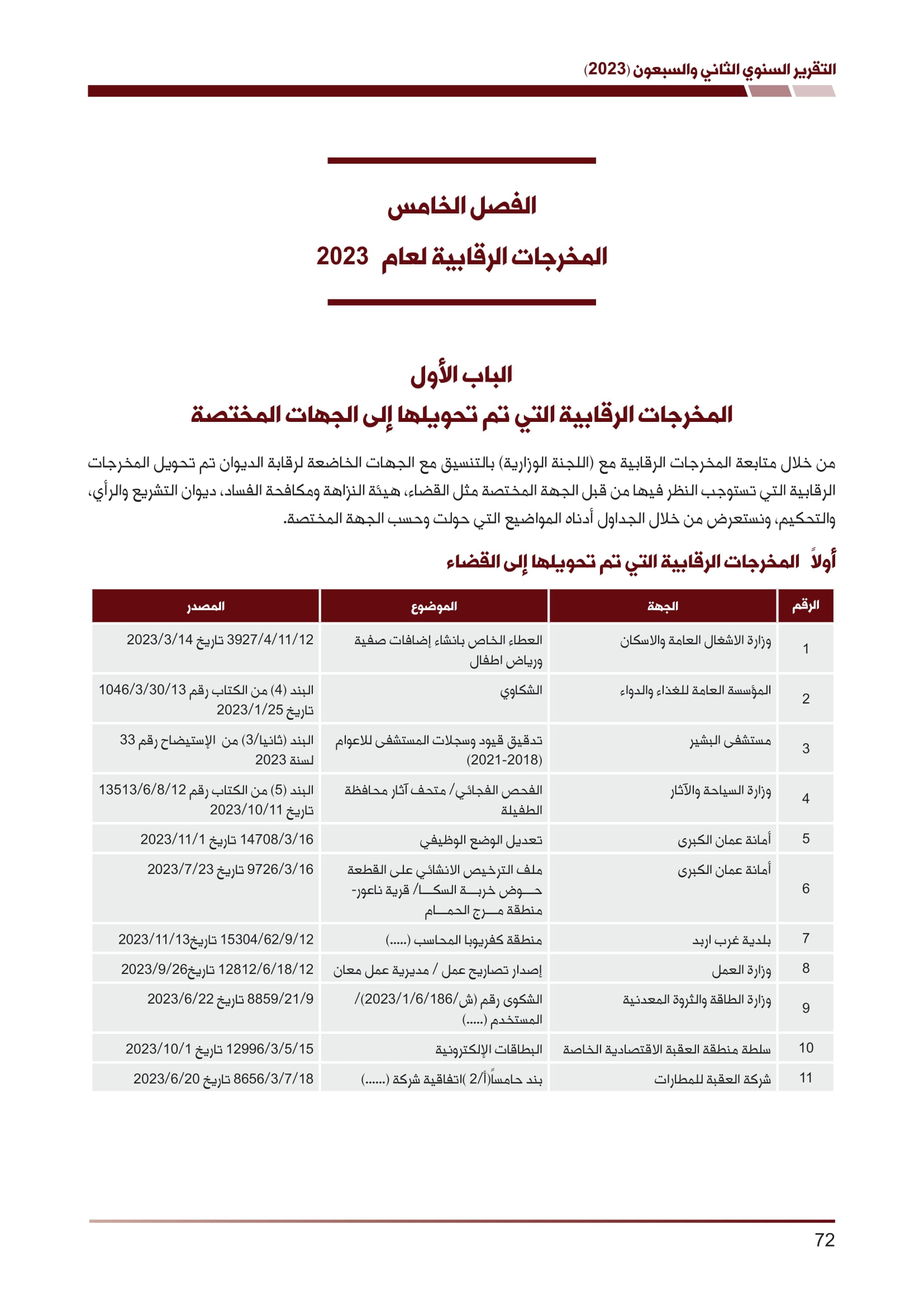 درب الأردن - أصدر ديوان المحاسبة، تقريره السنوي الـ 72 لعام 2023.
