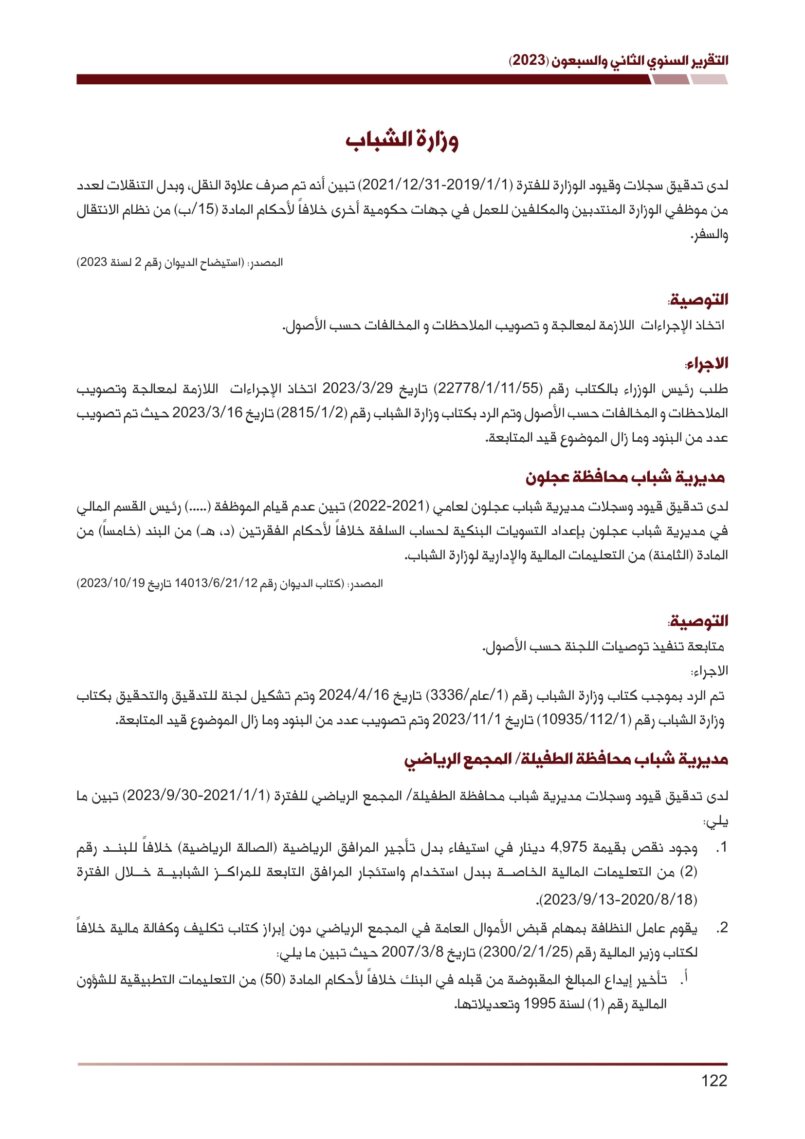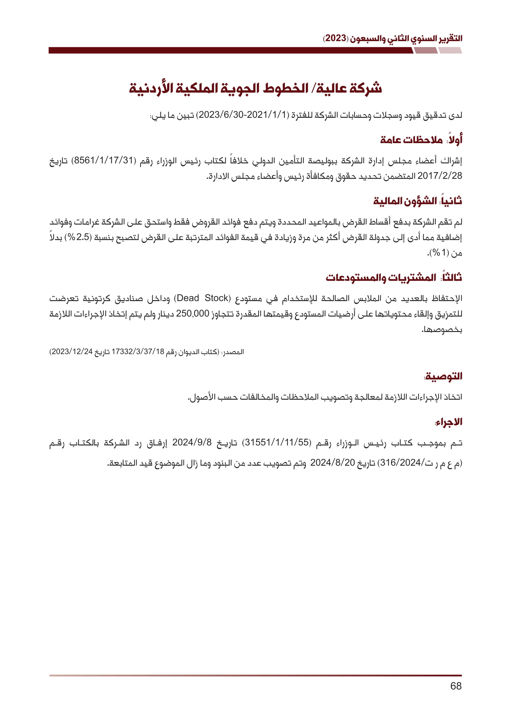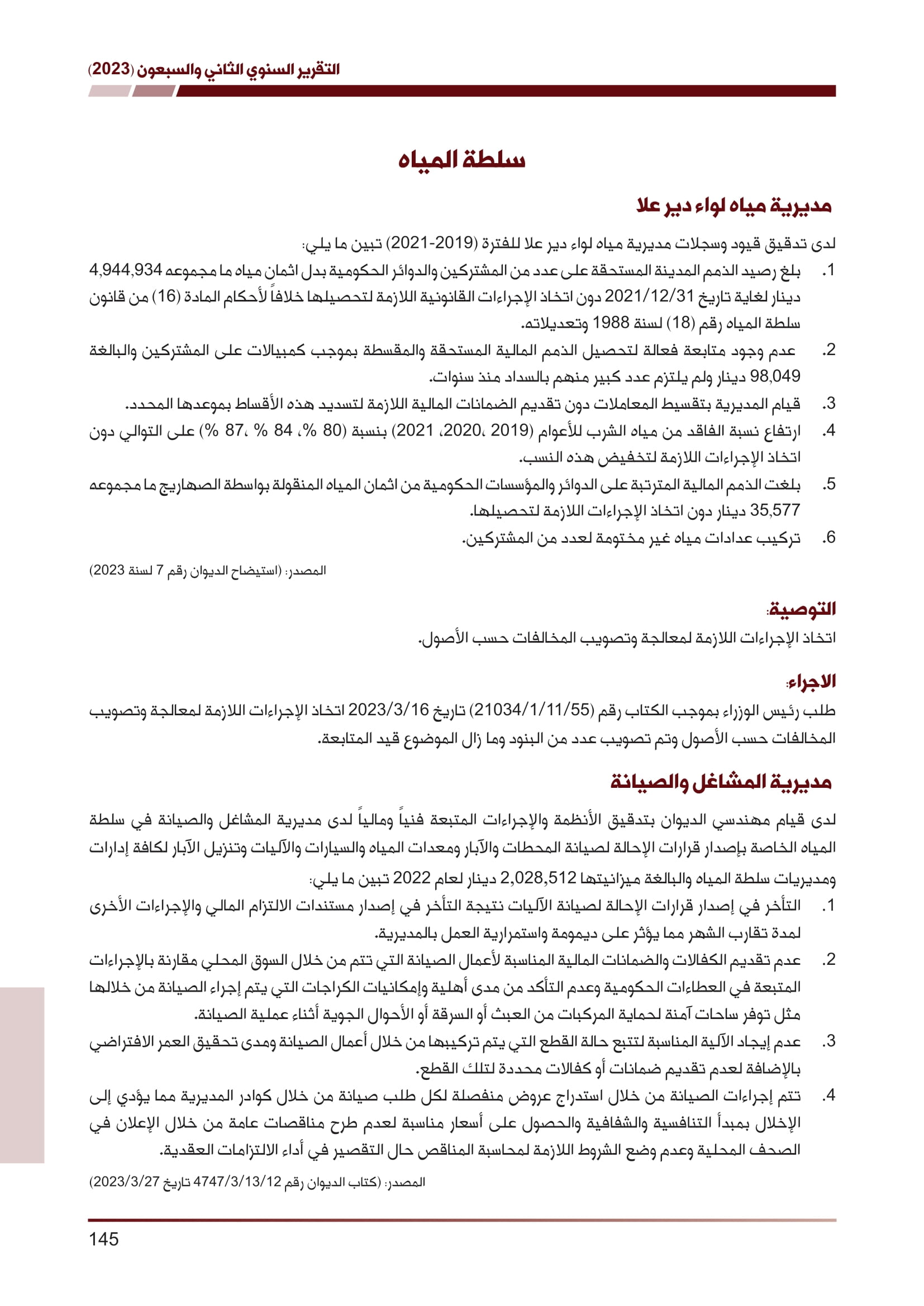 درب الأردن - أصدر ديوان المحاسبة، تقريره السنوي الـ 72 لعام 2023.