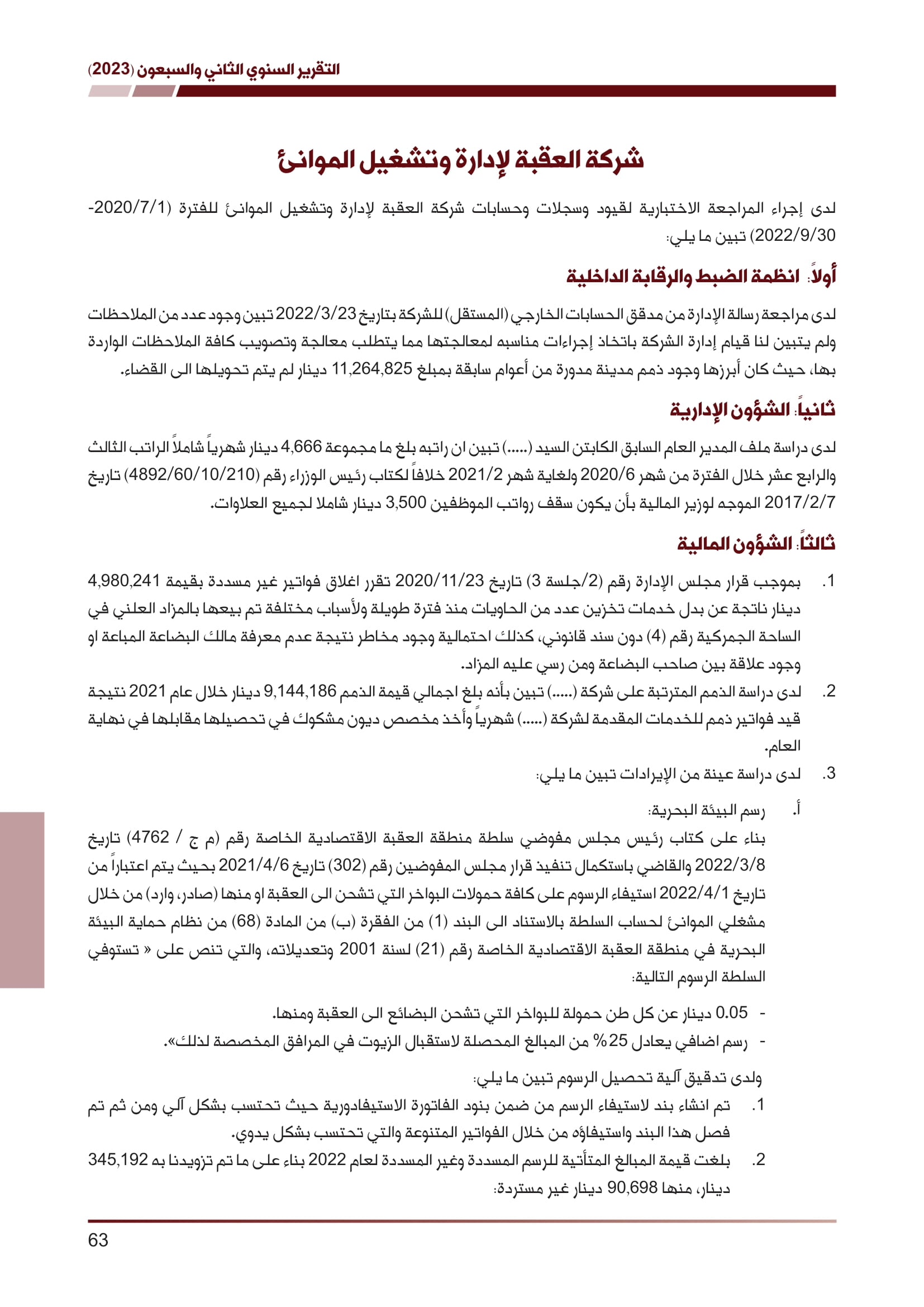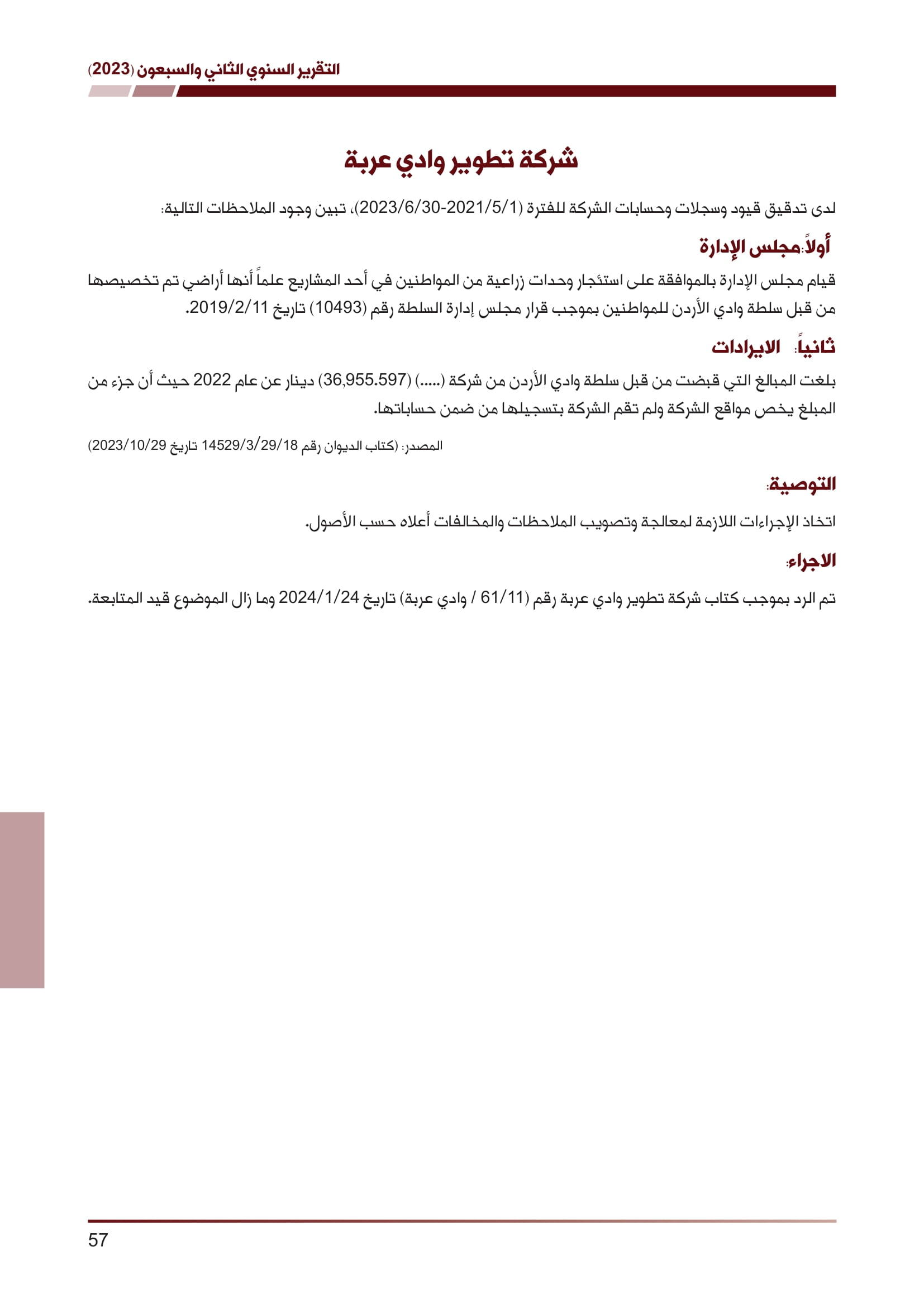 درب الأردن ينشر تقرير ديوان المحاسبة لعام 2023