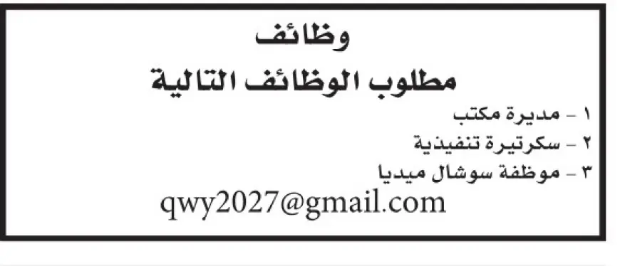 فرص عمل مميزة: مطلوب سكرتيرة، مديرة مكتب، وموظفة سوشيال ميديا