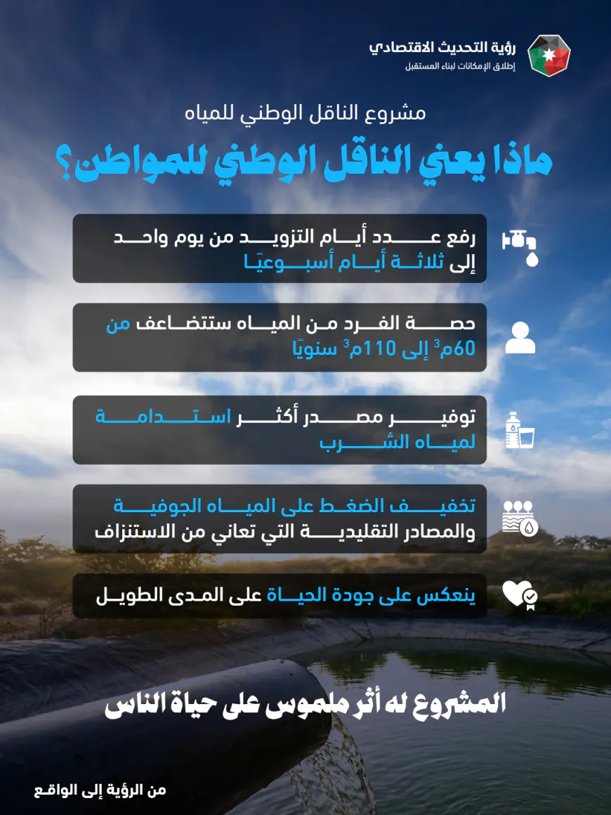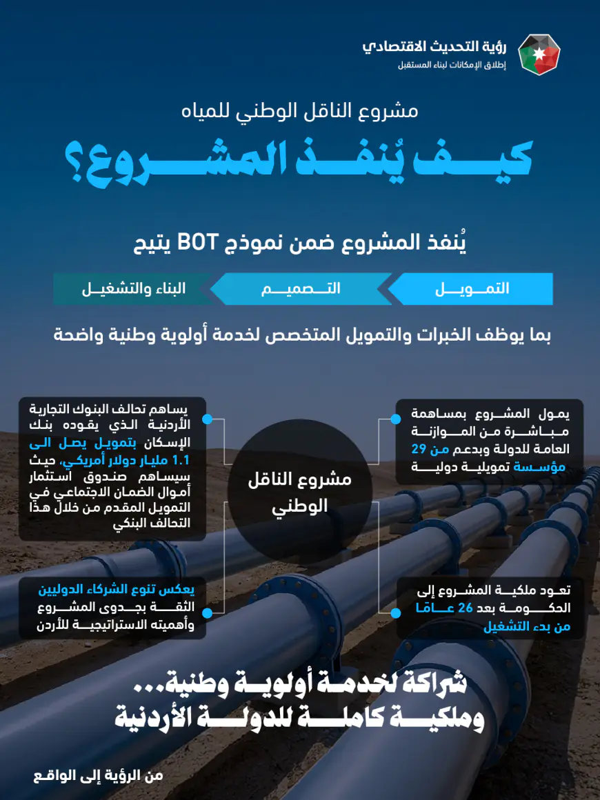 درب الأردن - تعرفوا على تفاصيل الاتفاقية الفنية القانونية النهائية لمشروع النَّاقل الوطني للمياه، التي تم توقيعها اليوم؛ تمهيداً لإبرام الغلق المالي في شهر تموز المقبل، وبدء الأعمال الإنشائية وأعمال الحفر في الصيف المقبل.