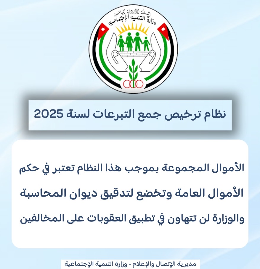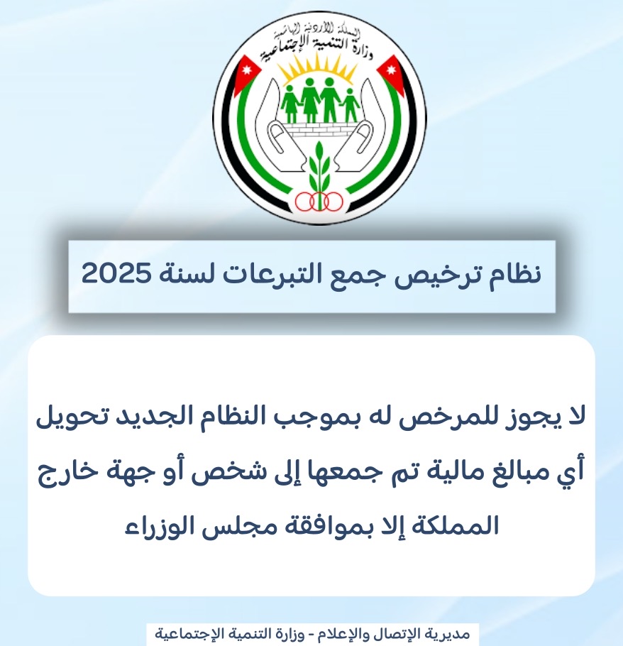ويحظر النظام البدء بأي حملة جمع لتبرعات قبل الحصول على ترخيص رسمي من وزارة التنمية الاجتماعية؛ وذلك لضمان الشفافية والمساءلة والرَّقابة.