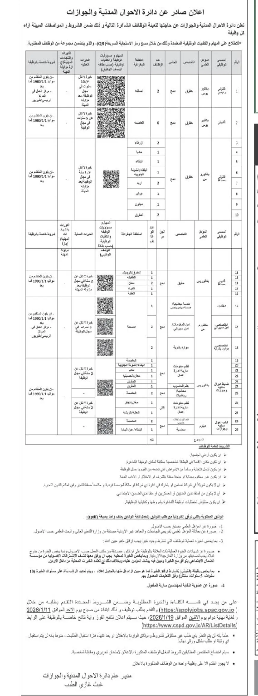 درب الأردن - أعلنت دائرة الأحوال المدنية والجوازات عن حاجتها لتعبئة الشواغر .