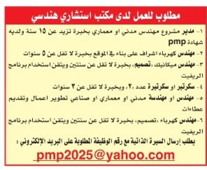 درب الأردن - أعلنت شركة هندسية عن حاجتها لعدة وظائف وبحسب الشروط التالية: