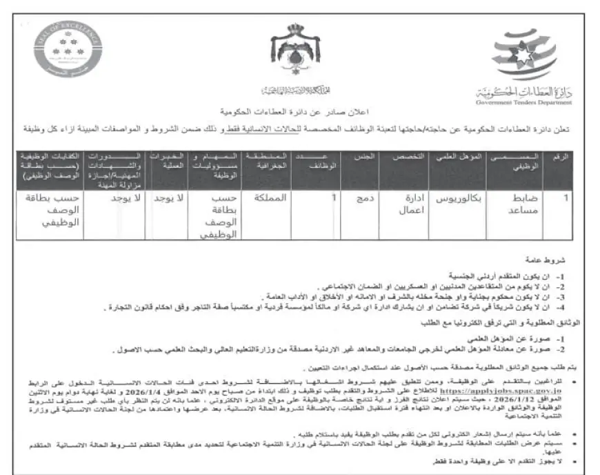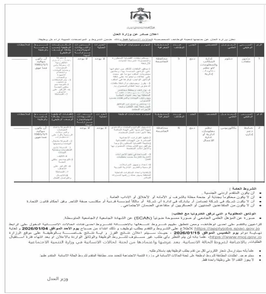 درب الأردن- أعلن وزارات ومؤسسات حكومية عن حاجتها لتعبئة عدد من الوظائف الشاغرة لديها.