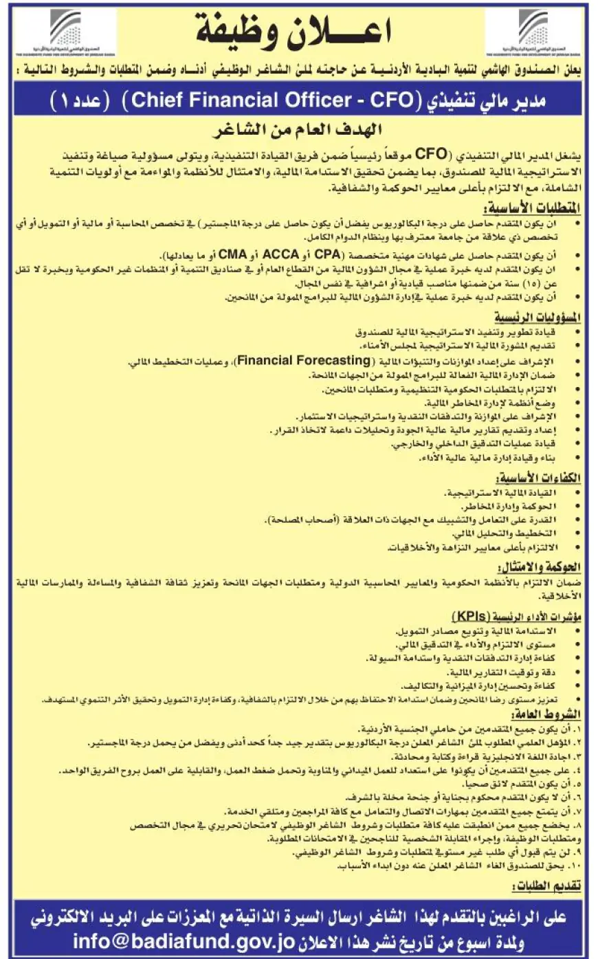 وظيفة شاغرة في الصندوق الهاشمي لتنمية البادية الأردنية
