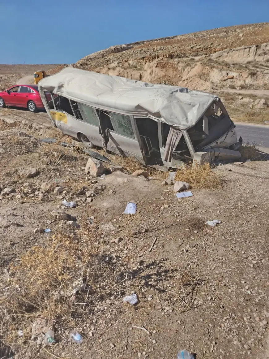 23 اصابة اثر حادث تدهور باص عمومي في محافظة اربد (صور)
